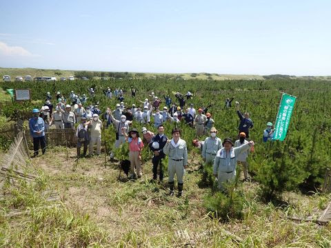 第2・緑の募金の森は、県民、企業・団体の皆さんが、毎年協働して保育を行うなど、海岸林再生のシンボリックなフィールドとして特徴ある森づくりを行っています。今年も新型コロナウイルス感染防止対策を徹底し、令和3年7月29日(木)に下刈作業を実施しました。今年も新規に参加された企業さんが3社あり、SDGs等にも関連して、森林への関心がますます高まってきている印象を受けました。参加された皆さんは次のとおりです。<敬称略>