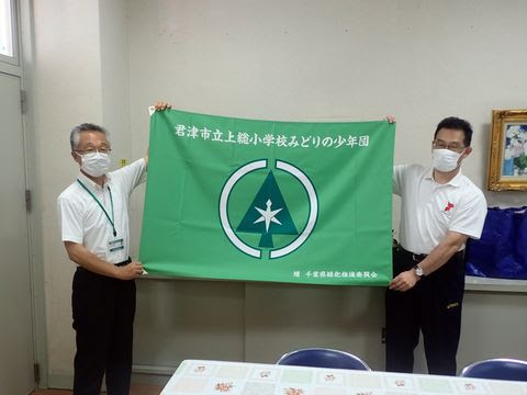 君津市立上総小学校みどりの少年団に団旗を贈呈