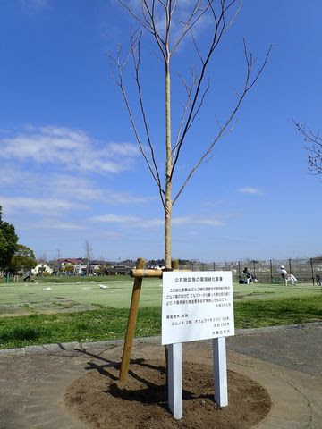 公益社団法人ゴルフ緑化促進会並びに県内の協力ゴルフ場からの緑化協力金により、令和2年度はみずほ台近隣公園(大網白里市)に、ユリノキ2本、オオムラサキツツジ136本を植樹しました。この公園では平成元年秋に千葉県を襲った台風・豪雨による被害を受け、風倒等で失った樹木の跡地などに今回の植樹が行われました。