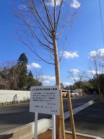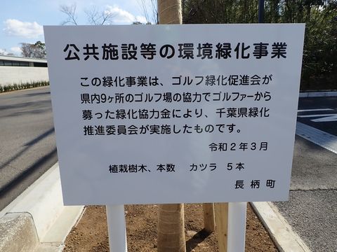 (公社)ゴルフ緑化促進会並びに県内の協力ゴルフ場からの緑化協力金により、令和元年度は長柄町道1100号線(長生郡長柄町上野)に、カツラ5本を植樹しました。