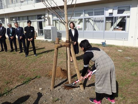 同校は古くから緑の少年団活動を続けてこられるなど、緑をとても大切にされる学校です。新たに植樹された樹木も、きっと大きく育つことと思います。