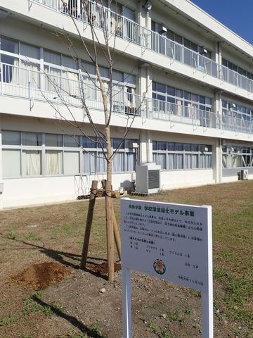 ㈱ローソンのご協力(緑の募金)により、国土緑化推進機構を通じて全国で70校が実施した令和元年度学校環境緑化モデル事業。当県では長狭学園(鴨川市立長狭小学校)が実施されました。長狭学園は県内初の小中一貫校としてスタートされ、10周年を迎えたことを記念し、サクラやウメなどの植樹や既存木の剪定、樹木名のプレート設置を行われました。