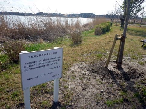 (公社)ゴルフ緑化促進会並びに県内の協力ゴルフ場からの緑化協力金により、平成29年度は手賀沼遊歩道(我孫子市岡発戸新田地先)に、ソメイヨシノ18本を植樹しました。手賀沼沿いに設置されているこの遊歩道には既存のサクラもあり、サクラの名所としても親しまれていくことでしょう。