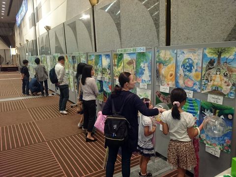 28年9月22日(木・祝)に「エコメッセ2016 in ちば」が行われました。このイベント会場のなかで、27年度国土緑化運動ポスター原画コンクール入賞作品を展示しました。この会場での展示は初めてですが、大勢の方に鑑賞いただきました。「感動した」と感想を述べて下さったり、思わず写真を撮る方も大勢でした。