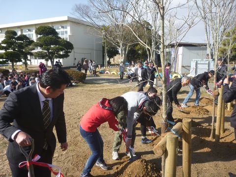 写真は28年2月10日(水)に行われた、完成記念植樹の模様です。