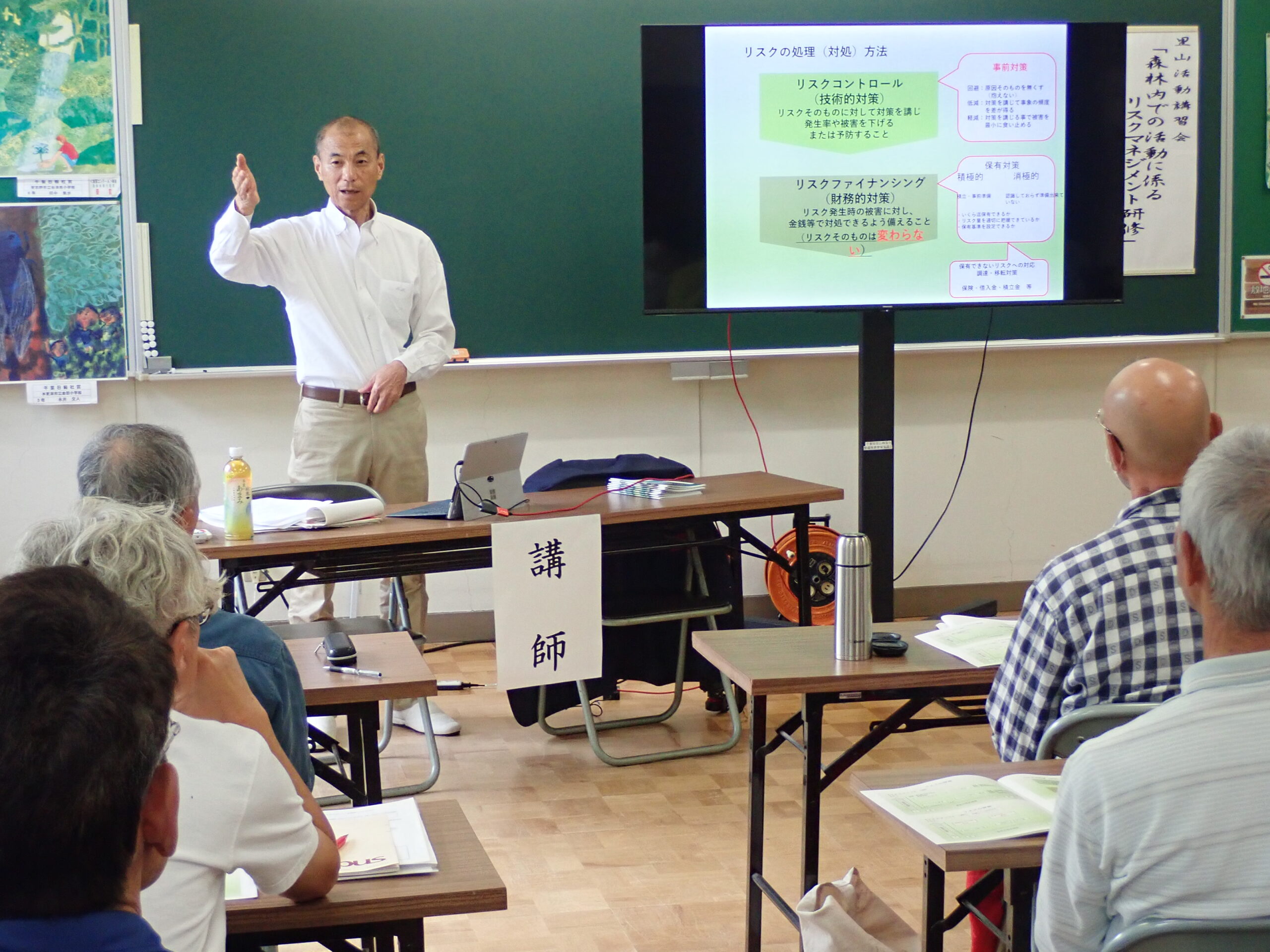 この研修会は、千葉県内の森林や里山をフィールドに森づくりや森林環境教育活動等に携わる方々、市町村担当者等に向けた研修会として、相互に関連のある「リスクマネジメント」と「保険・補償」の2テーマを取り上げ実施しました。