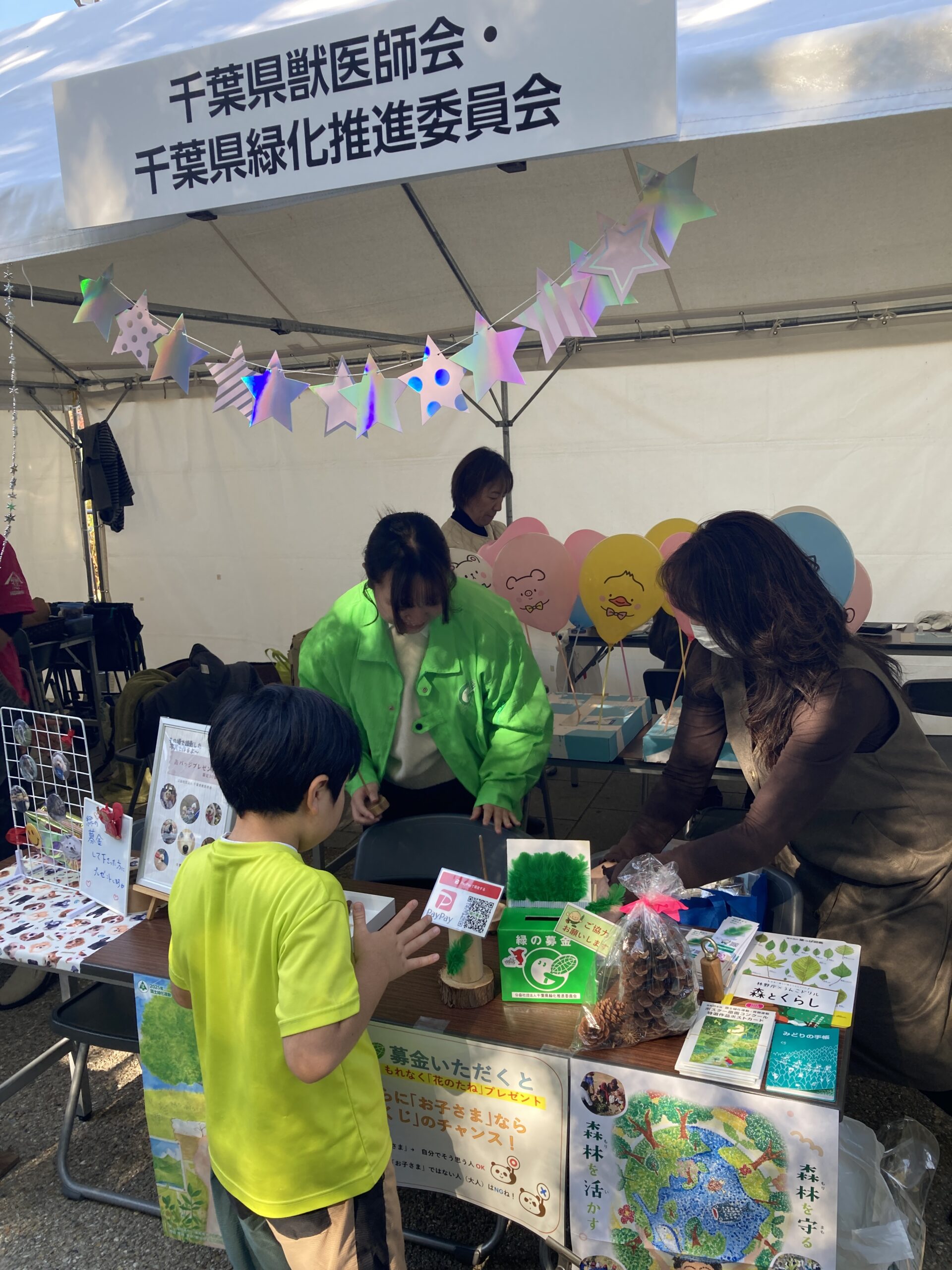 このイベントの開催テーマでもある、人の健康、動物の健康、環境と健康は密接に繫がっているとする「One Helth」の考えのもと、県獣医師会さんでは私どももお誘いくださっていると伺っております。千葉県のブースは、動物、食、環境(みどり)ほか内容豊富。県獣医師会さんによるペットの缶バッジ作成コーナーも人気で、参加された方が緑の募金にご協力くださったりと、一日大勢の来場者で賑わいました。大会運営には、獣医師を目指す学生さん(ボランティアスタッフ)も大勢参加されていて、この分野における未来の明るい力を感じました。